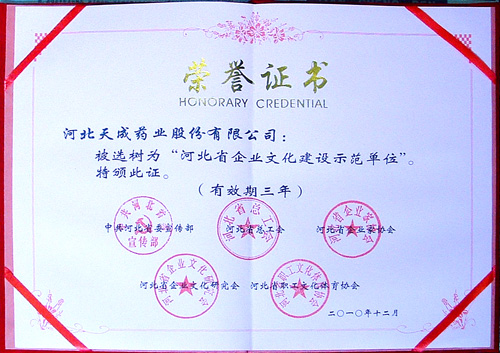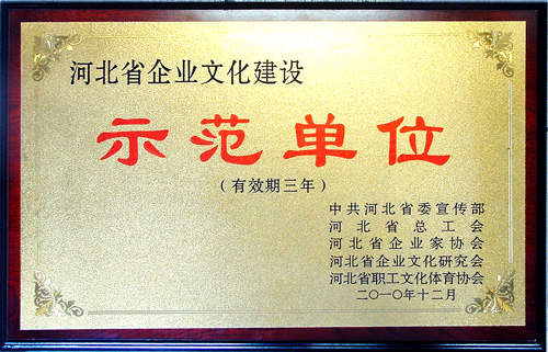 為全面落實科學發(fā)展觀,弘揚社會主義核心價值體系,充分發(fā)揮企業(yè)文化在提高企業(yè)管理水平、增強核心競爭能力、構(gòu)建和諧勞動關(guān)系中的積極作用,由河北省宣傳部、河北省總工會、河北省企業(yè)家協(xié)會發(fā)起,在全省范圍內(nèi)選樹河北省企業(yè)文化示范單位及企業(yè)文化先進個人活動。近日,傳來喜報,我公司榮獲“河北省企業(yè)文化示范單位”稱號,公司董事長兼總經(jīng)理王振剛同志當選為“企業(yè)文化先進個人”。這是公司及董事長王振剛同志多年來堅持科學發(fā)展觀、按照社會主義核心價值體系、培育積極向上的企業(yè)核心價值觀、打造企業(yè)和職工共同愿景所做的不懈努力,結(jié)出了豐碩的成果。這是滄州市唯一一家獲此殊榮的中小型企業(yè),標志著我公司企業(yè)文化建設獲得了廣泛的社會認同,并逐步走向完善和成熟。